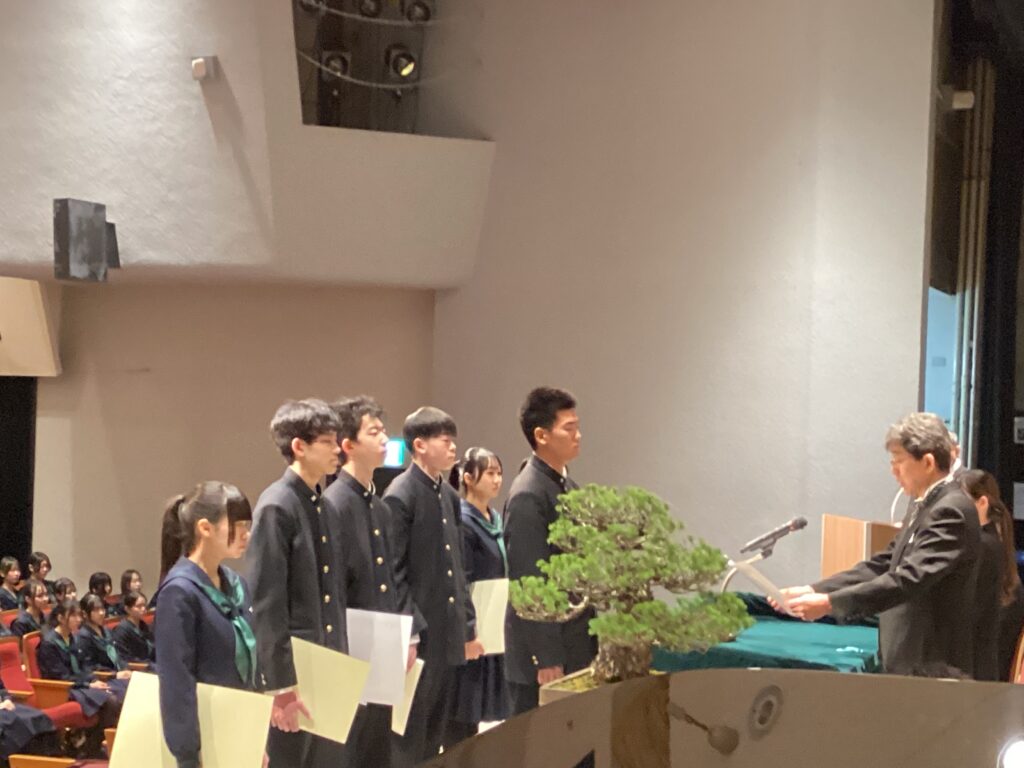 卒業証書授与では、各クラスの代表生徒が登壇し、証書を校長先生からいただきました。