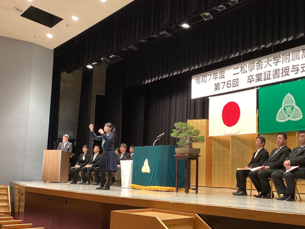 3月1日、今日は令和7年度二松学舎大学附属高等学校の第76回卒業証書授与式。日本教育会館一橋ホールにて挙行されました。