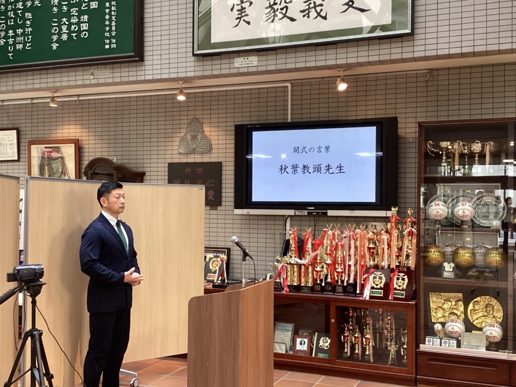 離任式では、生徒へメッセージをお話し下さいました。心に響く素敵なお言葉、ありがとうございました。お二人の先生方は、非常に長い間二松学舎大学附属高等学校にて勤務されておりました。長年に渡る二松学舎大学附属高等学校での教員人生に深く敬意を表します。4月から新しい生活が始まることと思います。新たな場でのご活躍とご多幸をお祈り申し上げます。