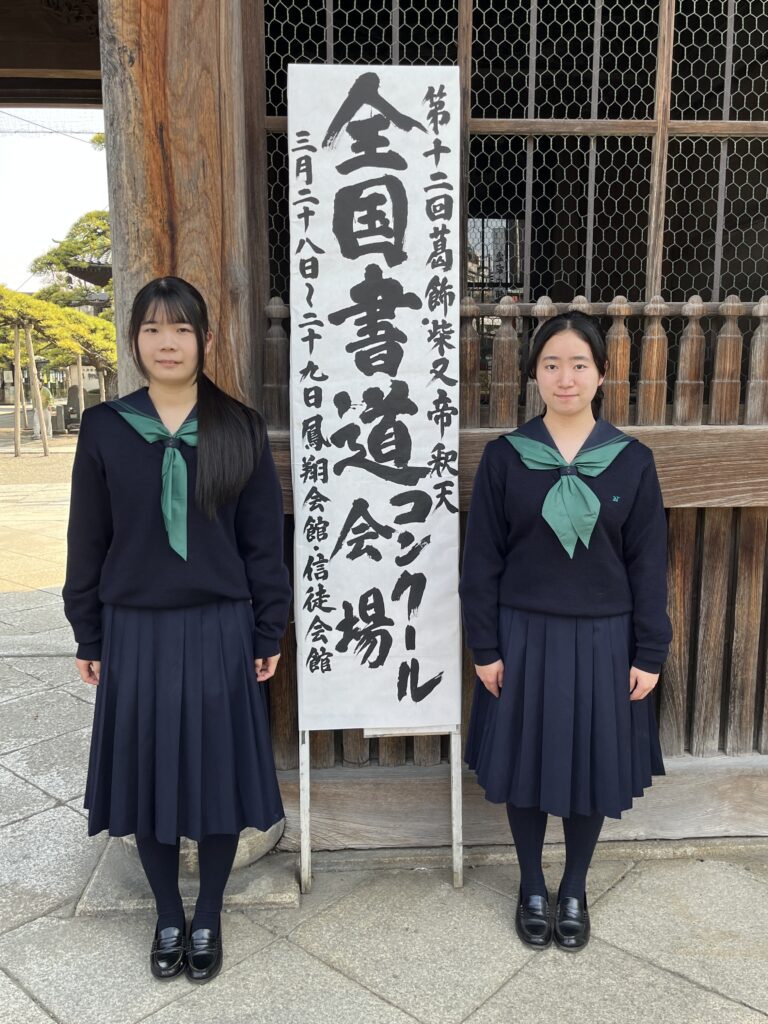 第12回葛飾柴又帝釈天全国書道コンクールの授賞式が帝釈天・題経寺で行われました。書道部では、仮名の作品に取り組み約一年、2年生の吉田さんが読売新聞社賞、維田さんが葛飾柴又寅さん記念館賞を受賞し、式典で賞状が授与されました。