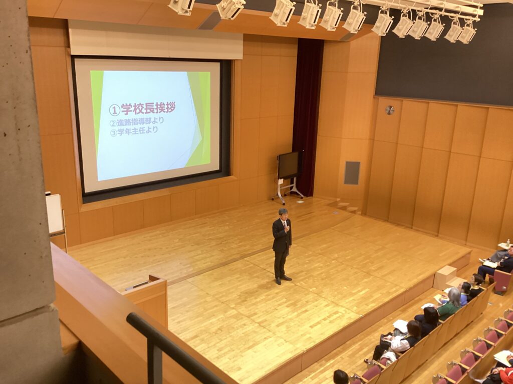 こちらも進路部、そして学年から様々なトピックでご説明をさせていただきました。(3年生の保護者の方々への進路説明会は先週実施済みです)