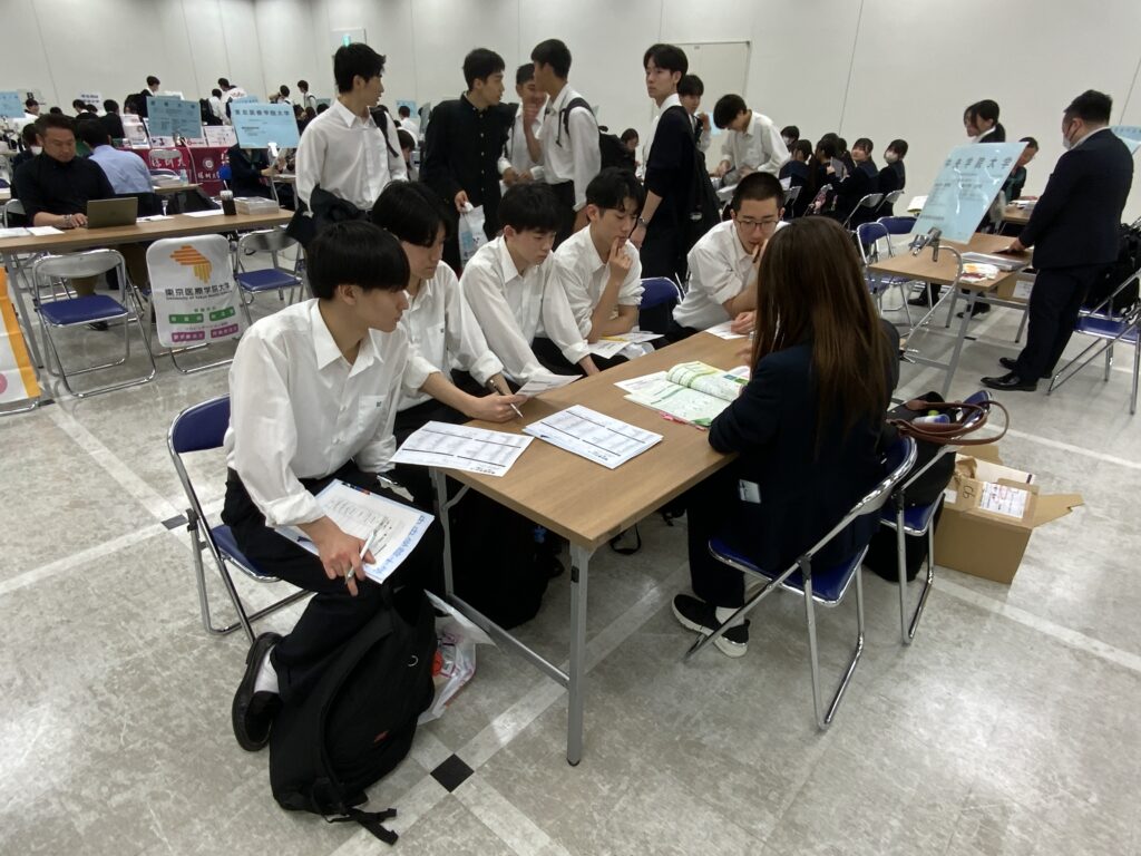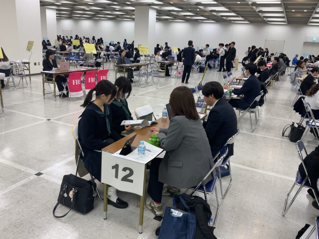 そして、同日の午後には新宿のNSビルのホールに移動しました。様々な大学や専門学校の方々に来ていただく進学相談会に参加。二松学舎だけの占有時間もあり、じっくり各学校の説明を聞くことができました。