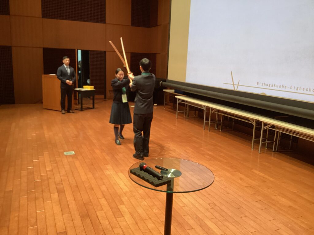 午後の部は男女ともに剣道部だったことから、昇段試験の型を実演してもらいました。急な振りに快く応えてくれて、ありがとう!