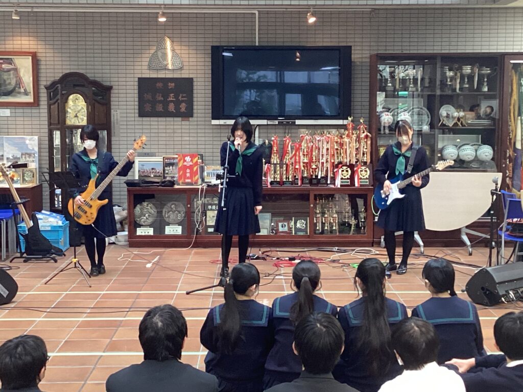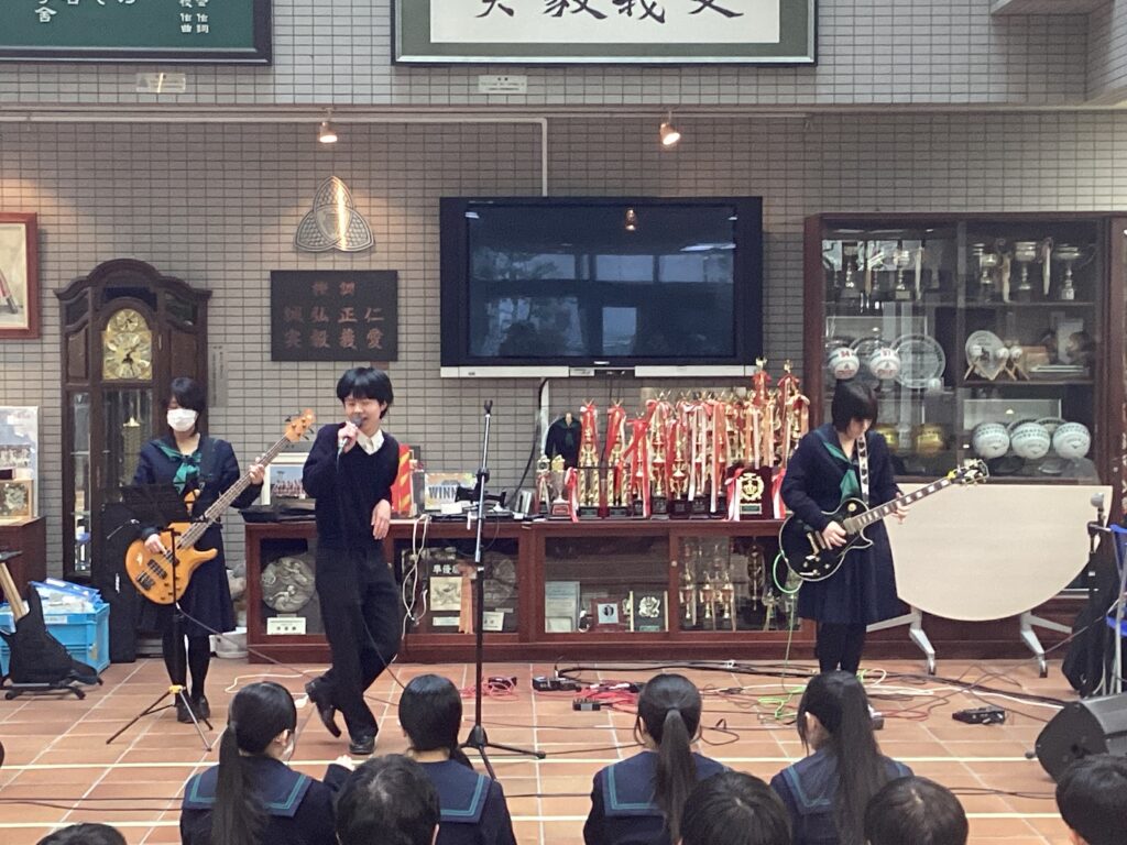 そんなテスト週間に入る前の2月下旬に、1階ホールにて毎月恒例ギター部員たちの演奏会が2日間行われました。