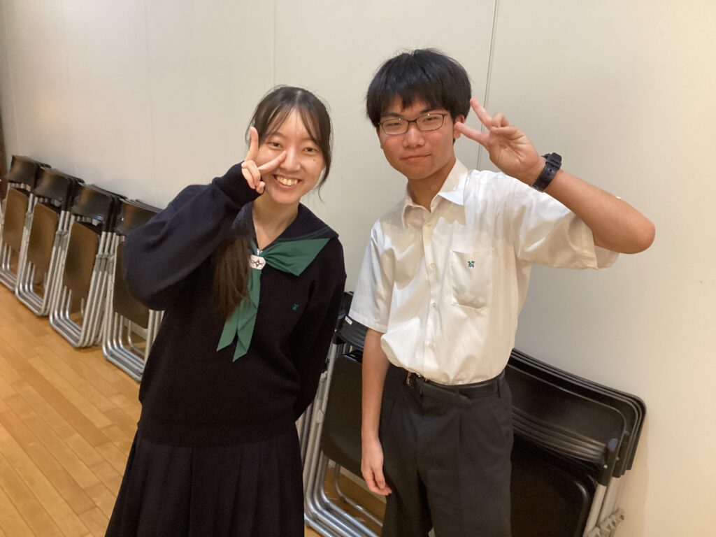 午後の在校生のスピーチは、情報通信研究部及び応援同好会の男子と、演劇部及びイラスト研究部の女子(生徒会副会長)お願いしました。