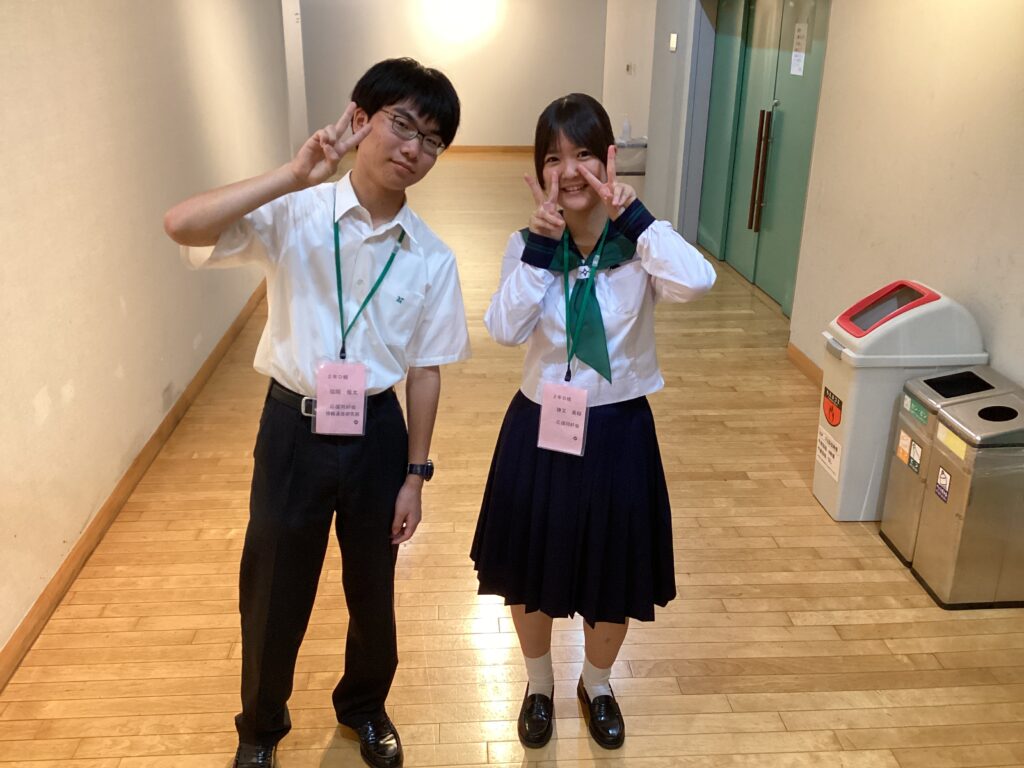 午前の在校生のスピーチは、社会科研究部の男子、女子バスケ部及びボランティア同好会の女子にお願いしました。