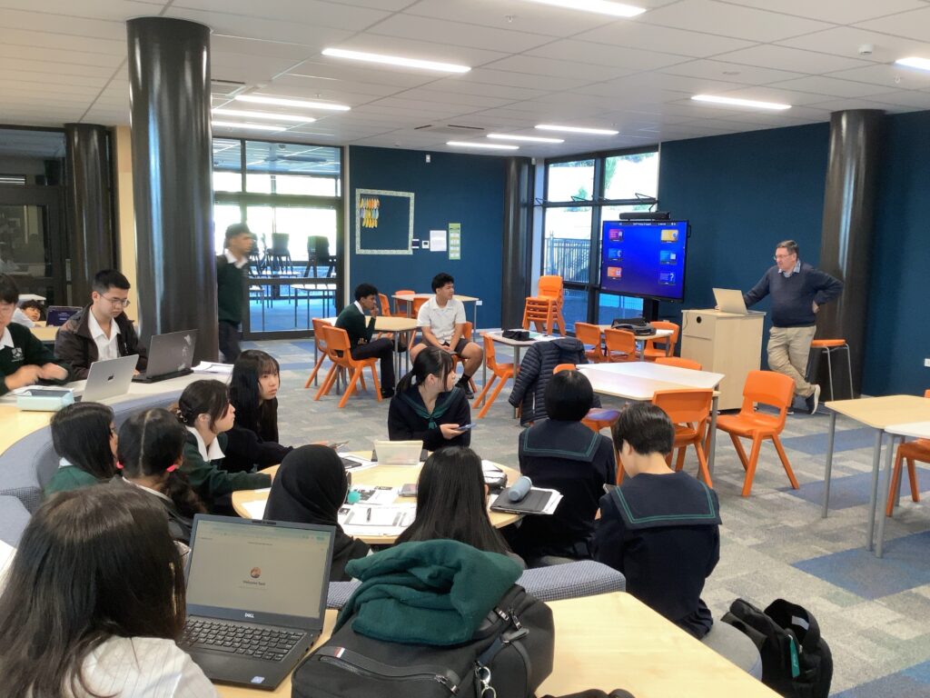 今日はイベントの様子をお届けします。最初に本校の目の前の大学講堂でのものです。受付はダンス部の皆さんです。