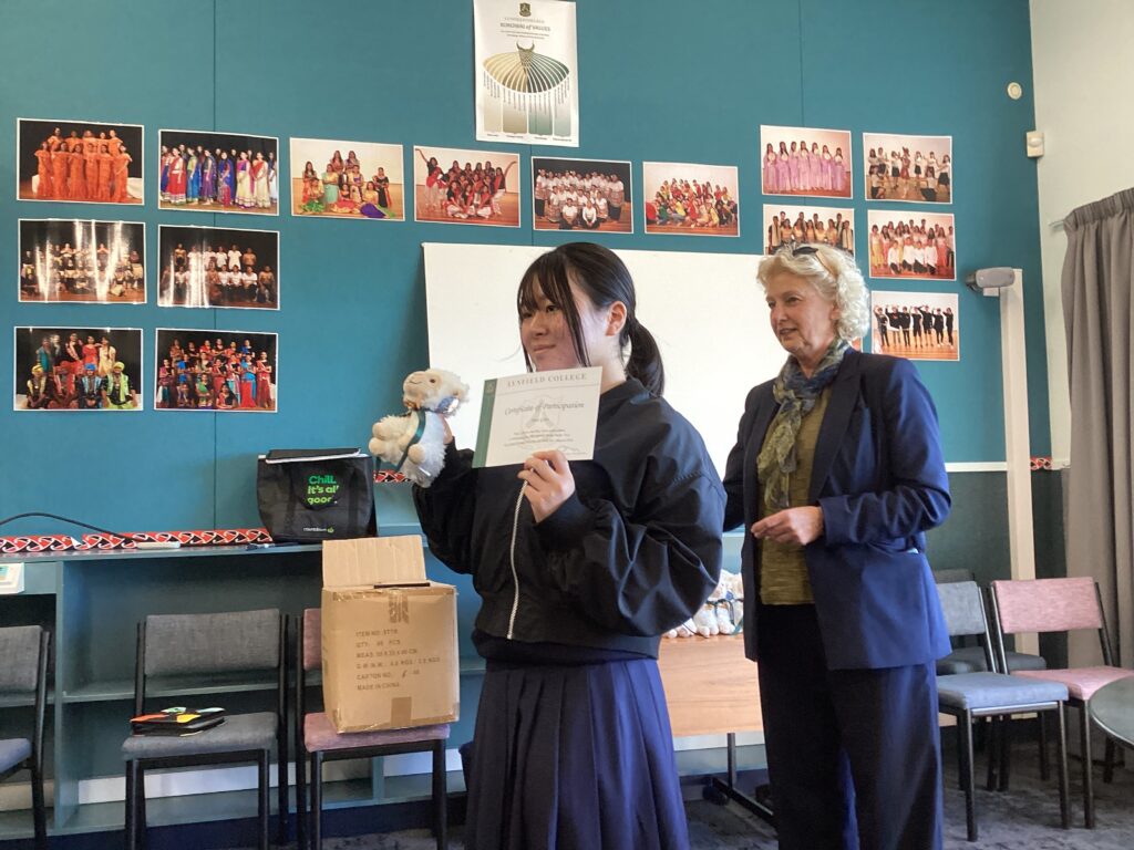 そして同窓会(松友会)の会長の大林さまより、支援金の贈呈です。ありがとうございました。
