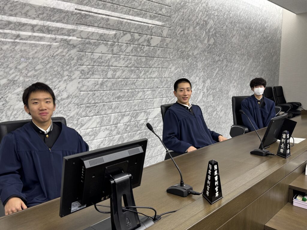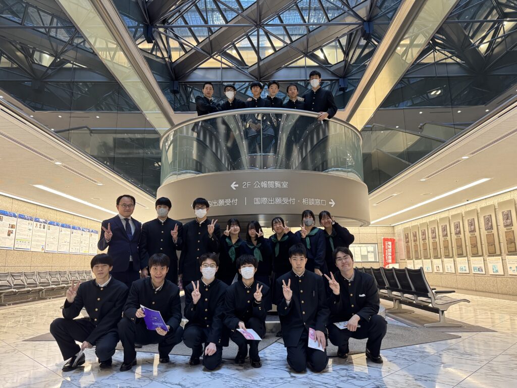 【特許庁(浅見)】特許庁では、実際に特許の無効審判などの審理を行う審判室を見学しました。普段は目にすることのない審理の現場を前に、生徒たちは知的財産を巡る判断がどのように行われているのかを、具体的なイメージを持って理解することができました。