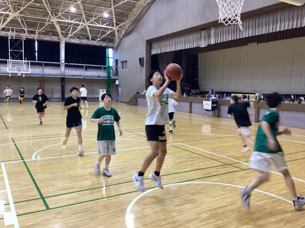 初日は午後練と夜練、2日目及び3日目は朝練・午前練・午後練・夜練、最終日は午前練、とバスケ漬けの日々を送りました。