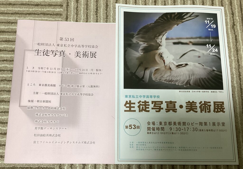 11月19日(水)〜24日(月)、上野の東京都美術館にて行われた第53回東京私立中学高等学校生徒写真・美術展(写真の部)に1年生・2年生、合わせて7名が出展しました。