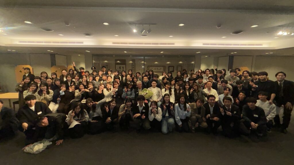 卒業式が出来なかった学年の生徒たちが、戸井田先生の卒業をお祝いしようとなんと約100人の卒業生たちが集まってくれました。