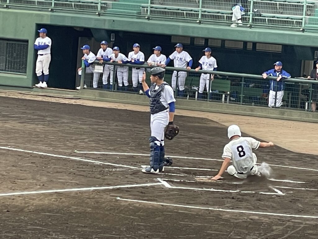 本校の先攻で試合が始まると、初回にいきなり打線が繋がります。四球とバントヒットで無死1・2塁のチャンスを作ると、3番・小田切豪君(2年)がセンターにヒットを放ち先制。1死後、5番・福和田啓太君(3年)、6番・淺沼湊君(3年)に連続タイムリーが飛び出して3ー0とします。