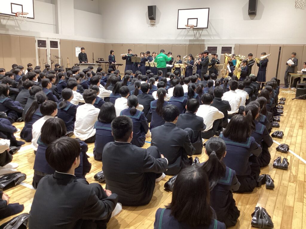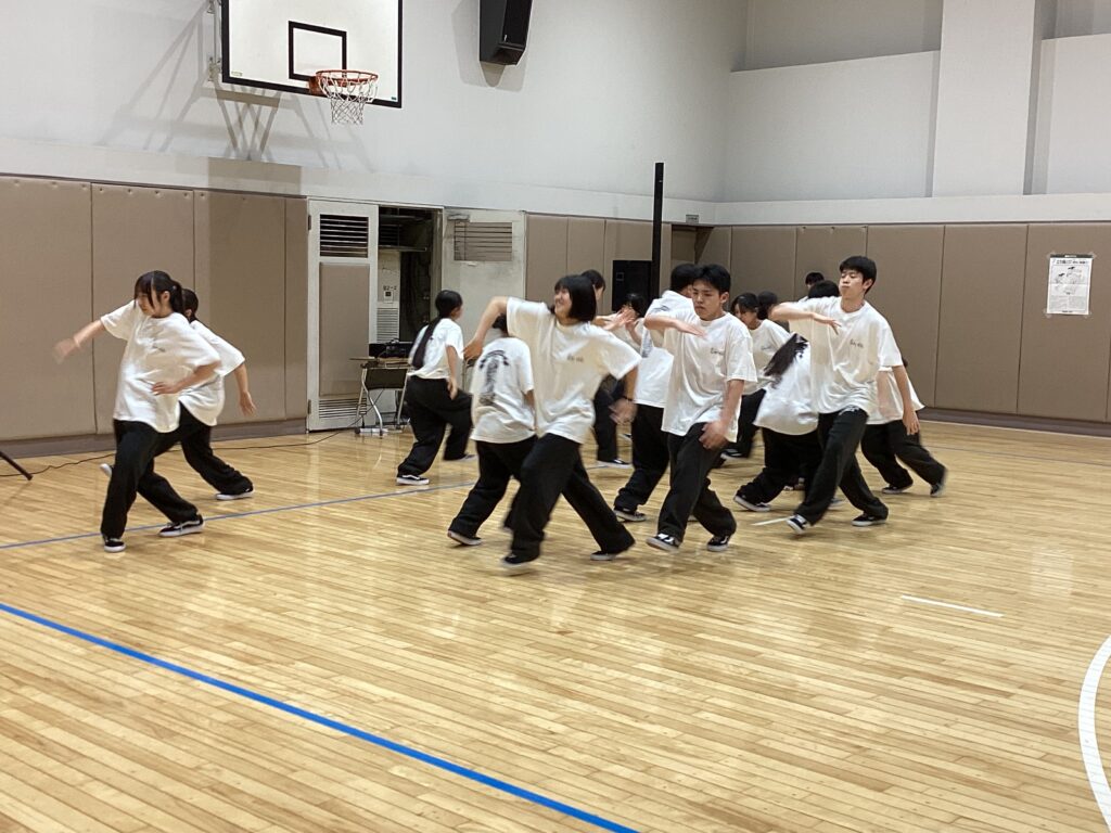 その後は、披露系の部活動の発表です。地下体育室に集まり、先輩方の演舞を見ました。